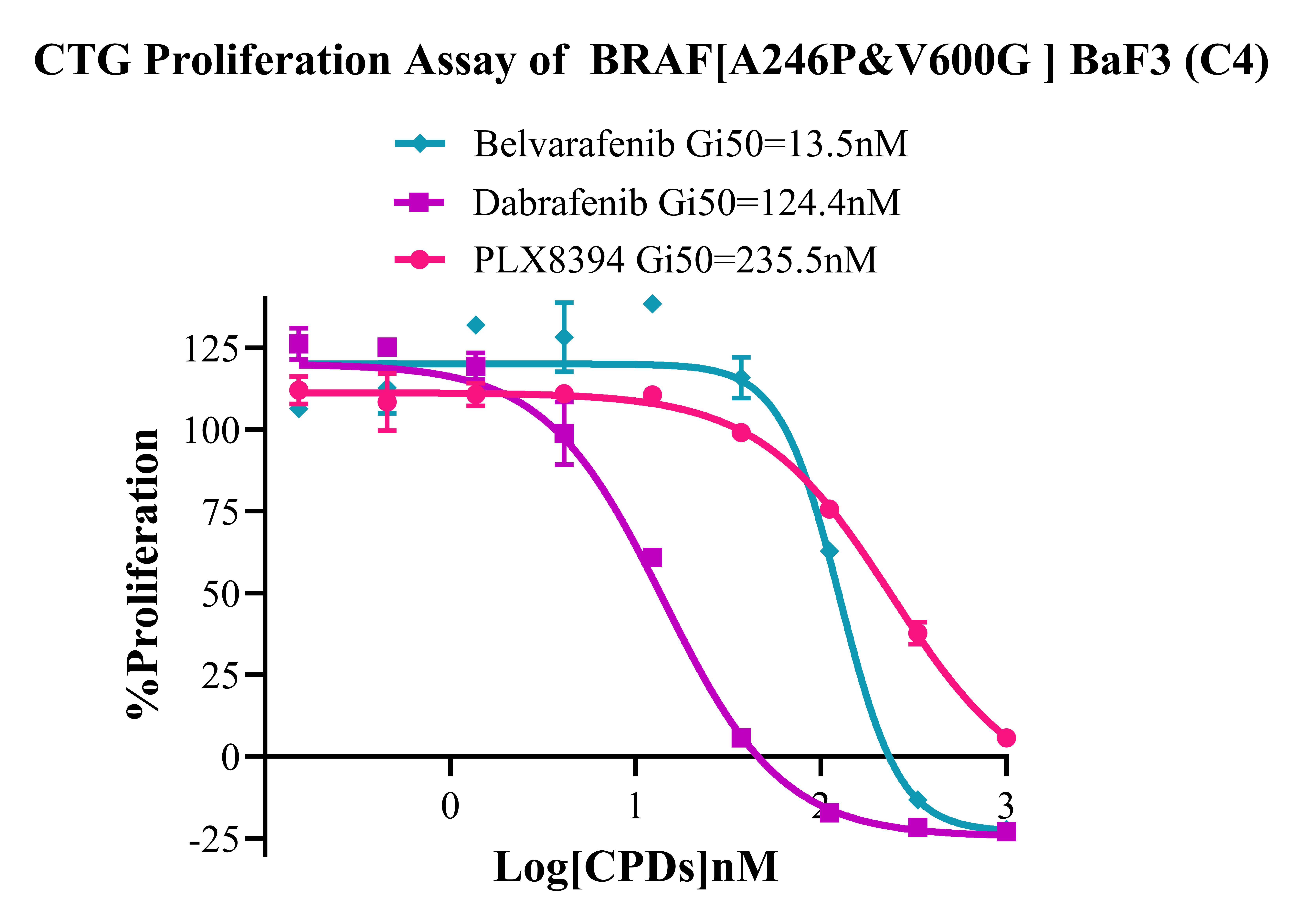 Figure 4. CTG Proliferation Assay of BRAF [A246P&V600G] BaF3(C4).