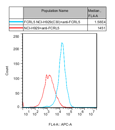![]() Figure 1. Recombinant FCRL5 NCI-H929 constitutively expressing FCRL5. |