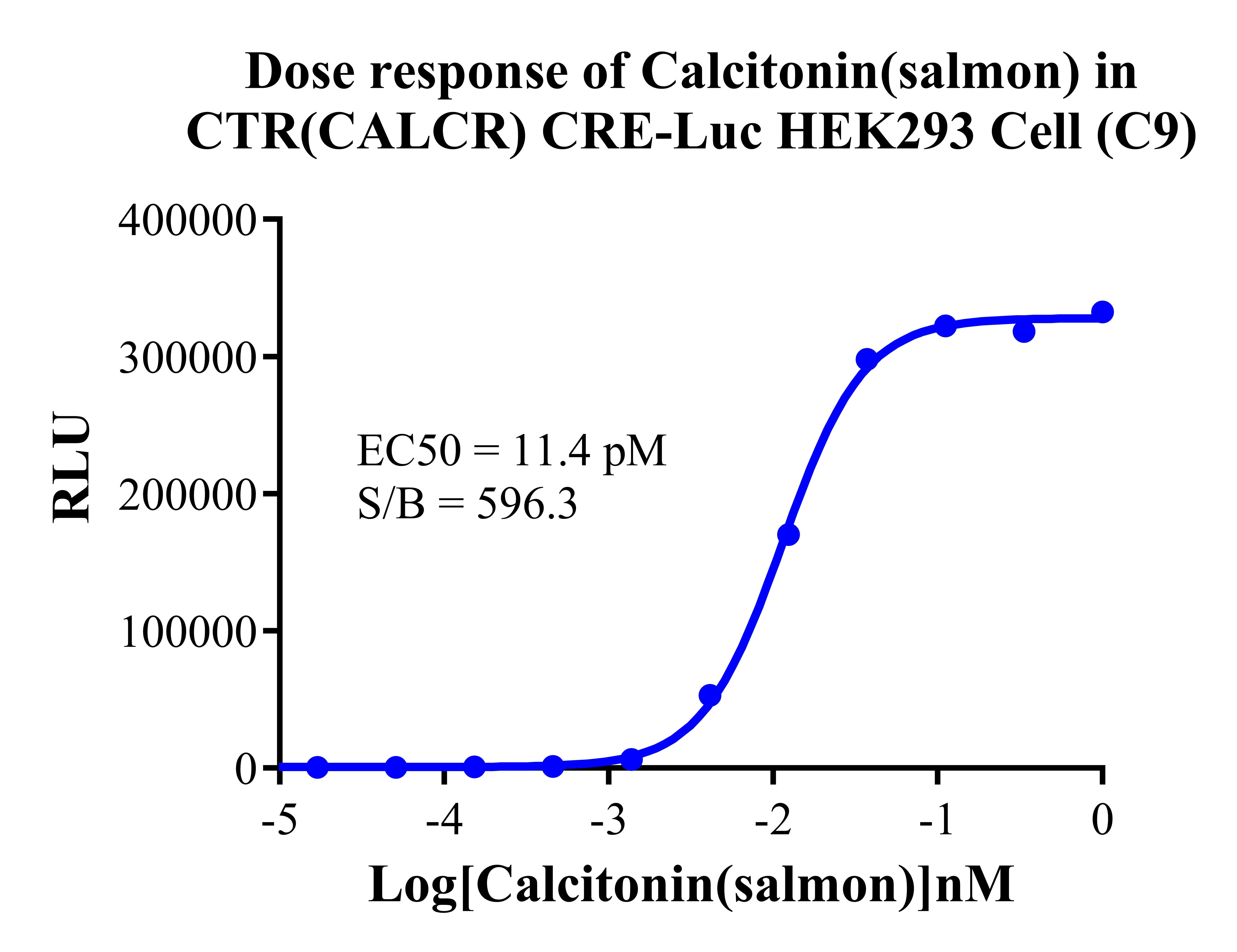 Figure 2. Dose response of  Calcitonin(salmon) in CTR(CALCR) CRE-Luc HEK293 Cells (C9).