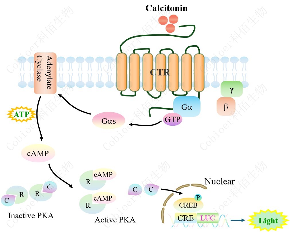 CTR(CALCR) CRE-Luc HEK293 細(xì)胞模型原理圖