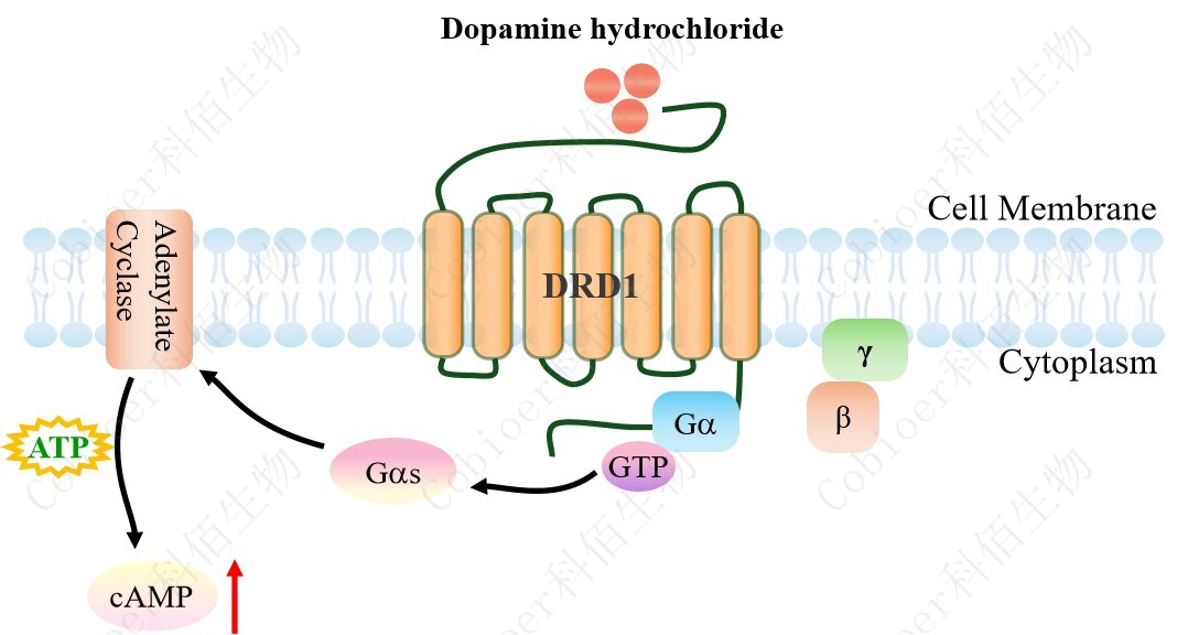 | 多巴胺(DA)是一種主要的兒茶酚胺神經(jīng)遞質(zhì),它與多巴胺受體(DRs)結(jié)合,因此 在中樞神經(jīng)系統(tǒng)(CNS)中起著重要作用,包括睡眠、工作記憶、情緒、學(xué)習(xí)等。DRs 是 由 DRD1、DRD2、DRD3、DRD4 和 DRD5 組成的 G 蛋白偶聯(lián)受體,根據(jù)它們對腺苷酸環(huán) 化酶(AC)活性的不同調(diào)節(jié)作用,分為 D1 樣受體(DRD1 和 DRD5)和 D2 樣受體(DRD 2、DRD3 和 DRD4)。 D1 樣受體與 Gs 偶聯(lián),其結(jié)合激活腺苷酸環(huán)化酶,增加 cAMP/PKA 級聯(lián)反應(yīng)的激活。 由 D1 樣受體激活的信號級聯(lián)反應(yīng)也可以通過調(diào)節(jié)轉(zhuǎn)錄對細(xì)胞功能產(chǎn)生長期影響。例如,D 1 樣受體激動(dòng)劑會(huì)增加 cAMP 水平和 CREB 在 Ser133 位點(diǎn)的磷酸化,隨后調(diào)節(jié)了許多對各 種精神疾病的重要基因的轉(zhuǎn)錄。相關(guān)研究表明,一些 D1 激動(dòng)劑的行為效應(yīng)與 cAMP/PKA 信號傳導(dǎo)無關(guān),而是涉及非 cAMP 介導(dǎo)的信號傳導(dǎo),包括 PLC 介導(dǎo)的鈣升高。DA 可通過 作用于其受體來調(diào)節(jié)不同免疫細(xì)胞的激活和趨化性,從而充當(dāng)免疫系統(tǒng)的重要調(diào)節(jié)劑。DR D1 是最豐富的多巴胺受體,在中樞神經(jīng)系統(tǒng)(CNS)中高度表達(dá)。DRD1 是治療許多 CNS 疾病的具有吸引力的靶點(diǎn),還包括許多與認(rèn)知能力下降相關(guān)的疾病。 |