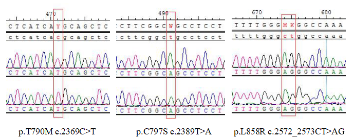 Figure 2. Sanger Sequencing of EGFR-L858R/T790M/C797S