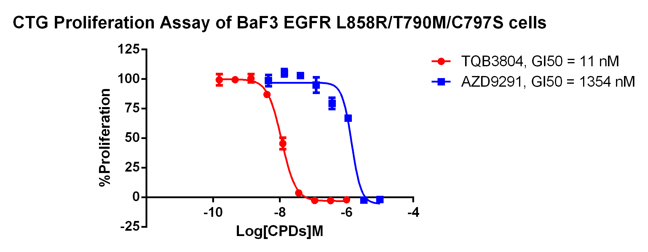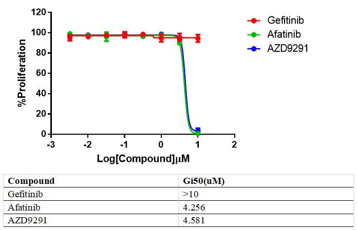 Figure 3. Anti-proliferation assay of three reference compounds on the EGFR L858R-T790M-C797S/BaF3 Stable Cell Line.