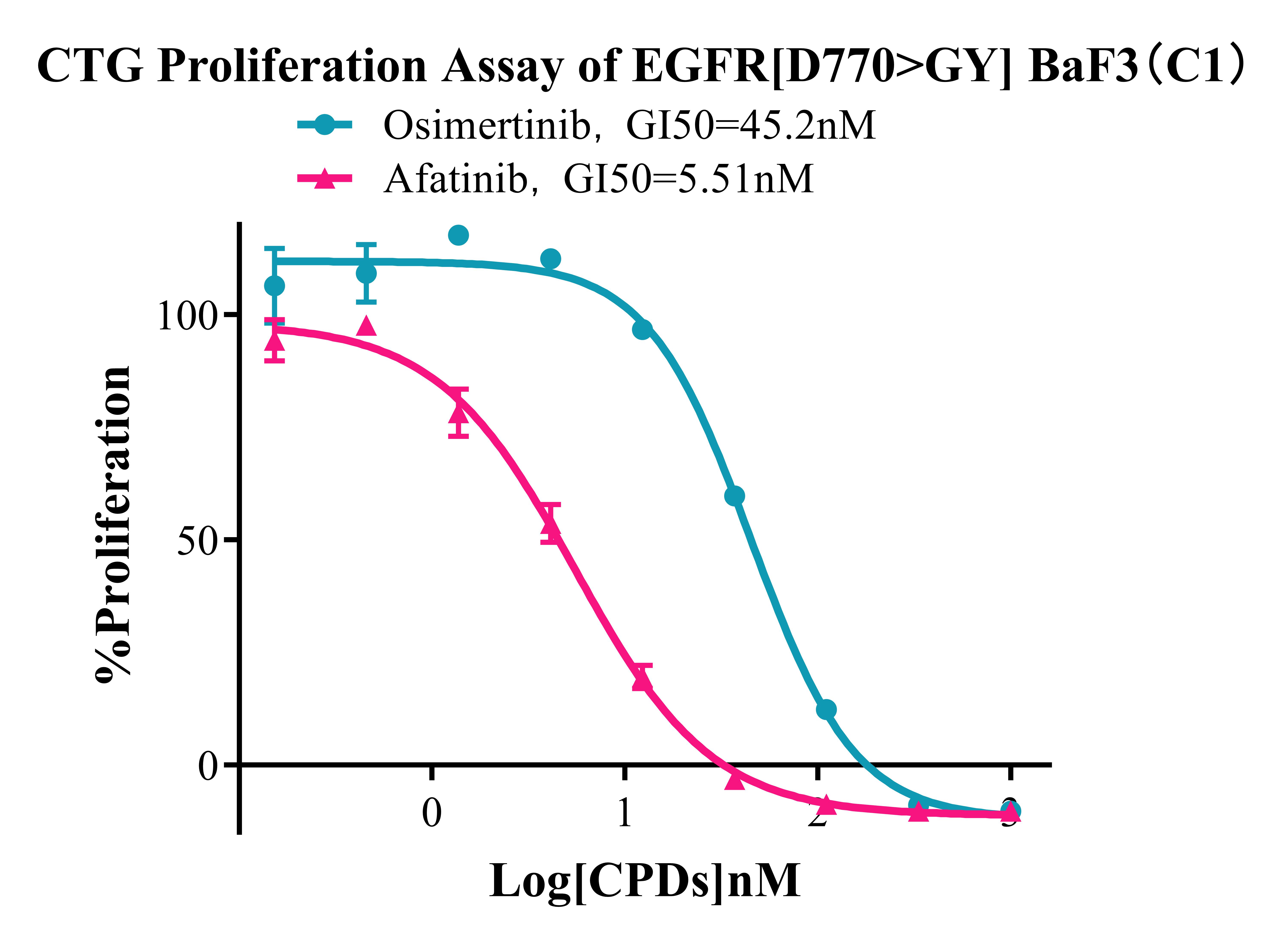 Figure 3. CTG Proliferation assay of EGFR[D770>GY] BaF3(C1).