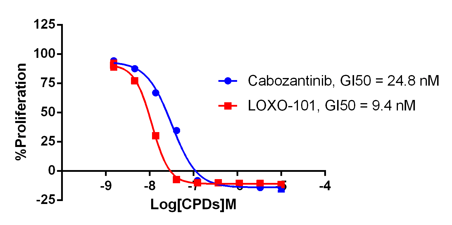 Figure 3. Anti-proliferation assay of two reference compounds on the LMNA-NTRK1/BaF3 Stable Cell Line