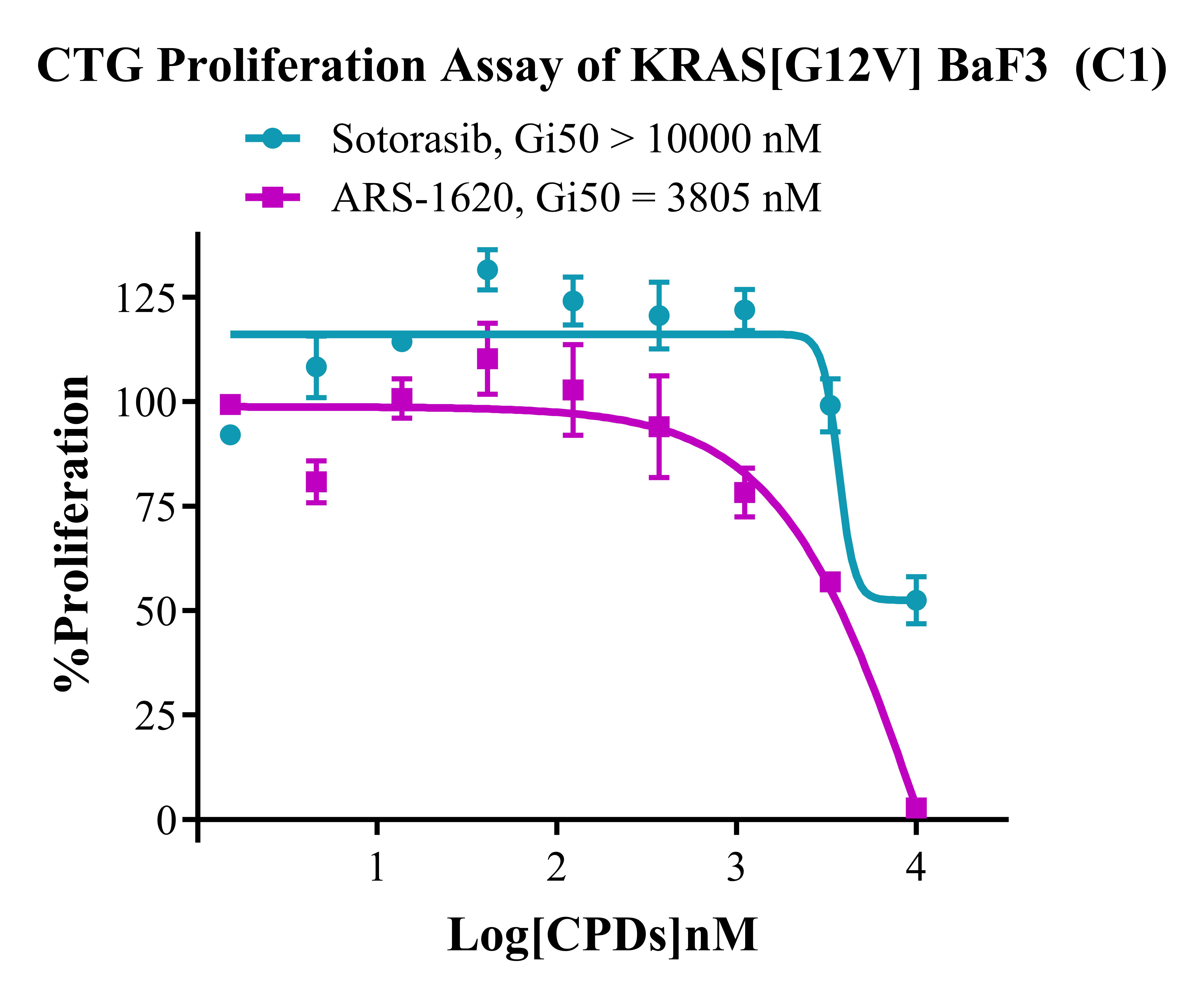 Figure 3. CTG Proliferation Assay of KRAS [G12V] BaF3(C1).