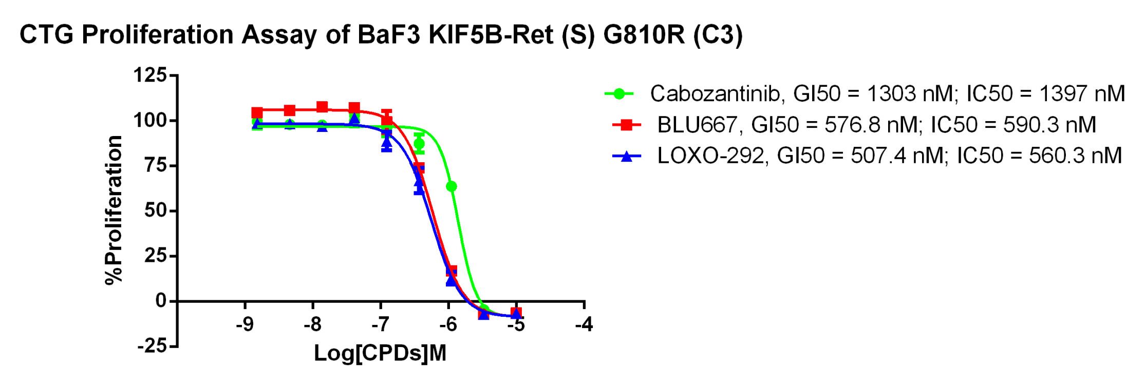 Figure 4. CTG Proliferation Assay of BaF3 KIF5B-Ret (S) G810R (C3).