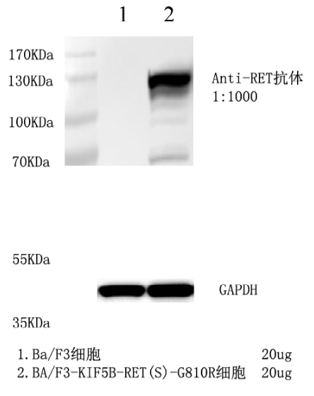 1. WB of KIF5B-RET (G810R)/BaF3