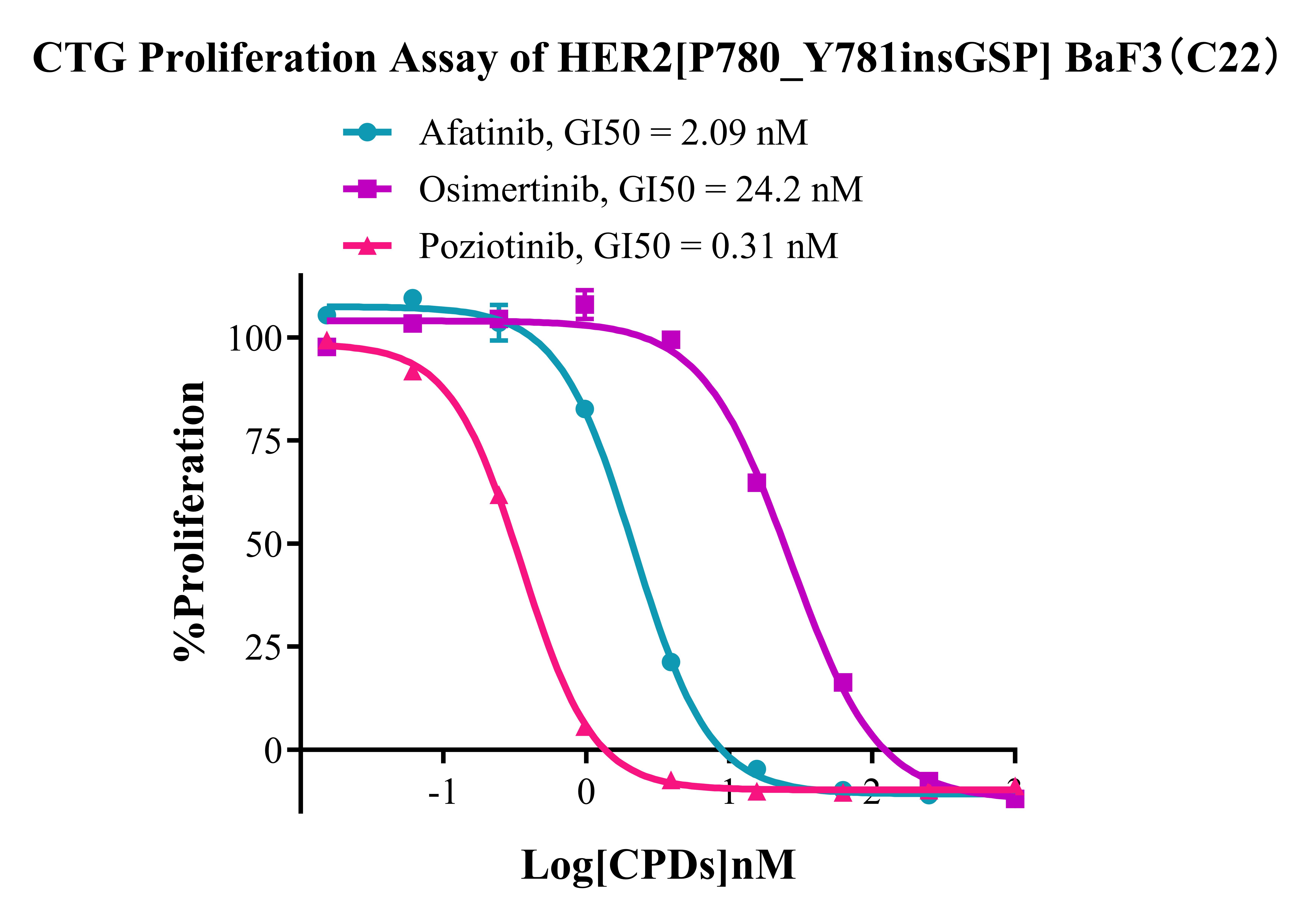 Figure 3.CTG Proliferation Assay of  Her2 [P780_ Y781insGSP] BaF3 (C22).