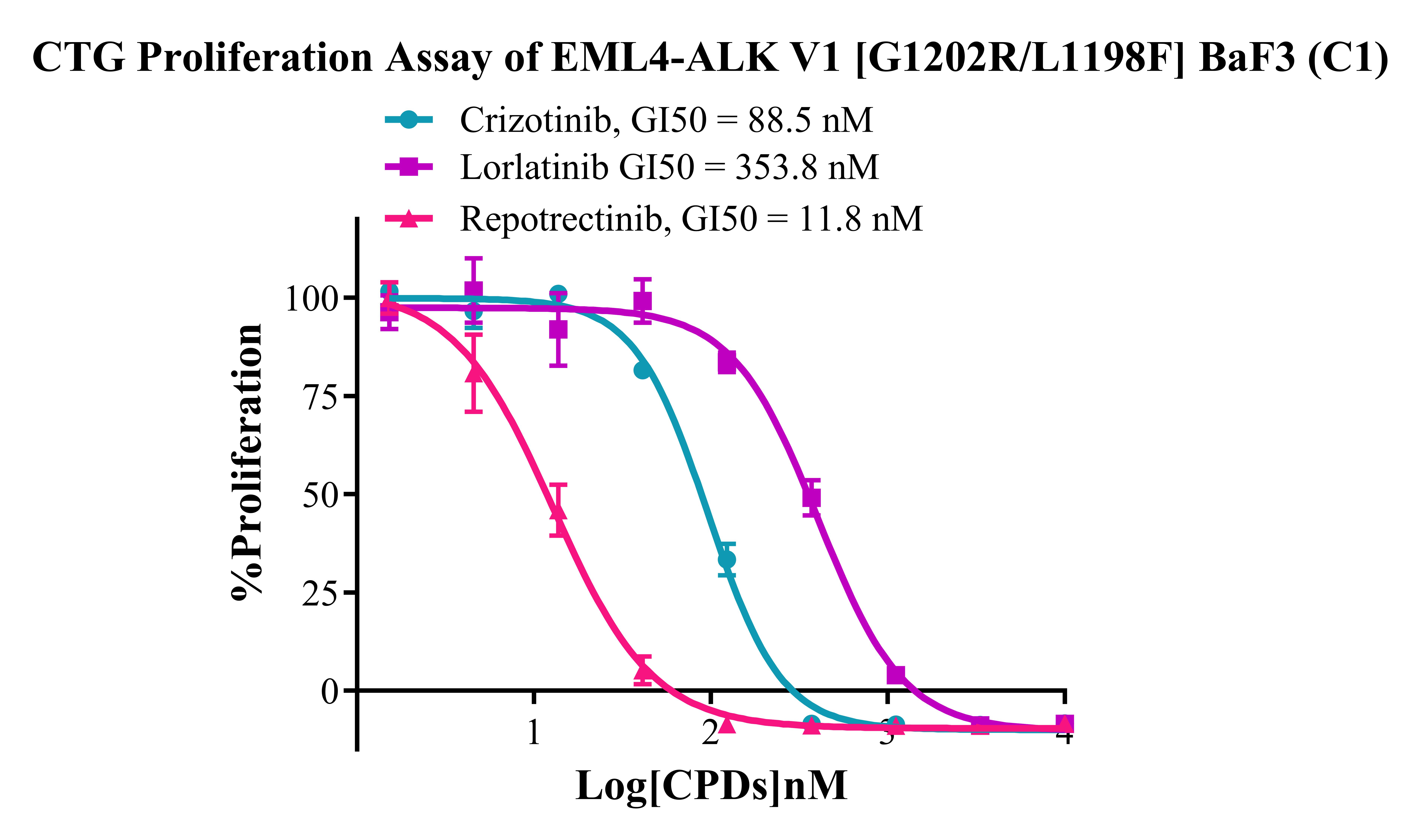 Figure 5. CTG Proliferation Assay of EML4-ALK V1 [G1202R/L1198F] BaF3(C1).