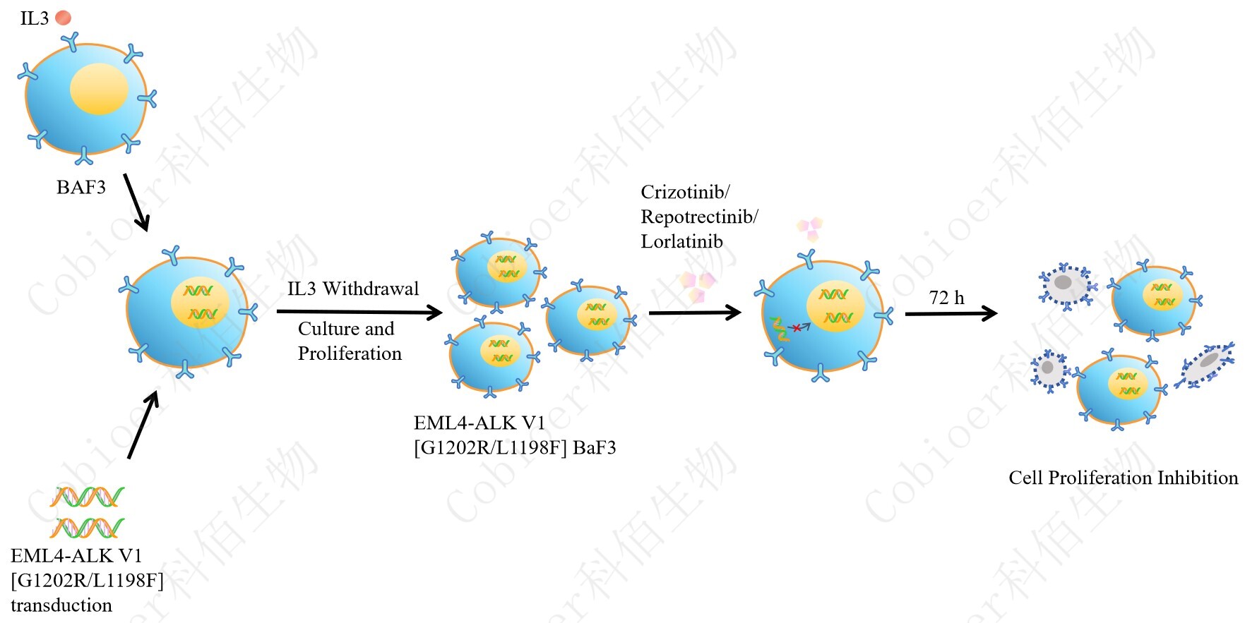 Figure 1. EML4-ALK V1 [G1202R/L1198F] BaF3 細(xì)胞的構(gòu)建原理圖