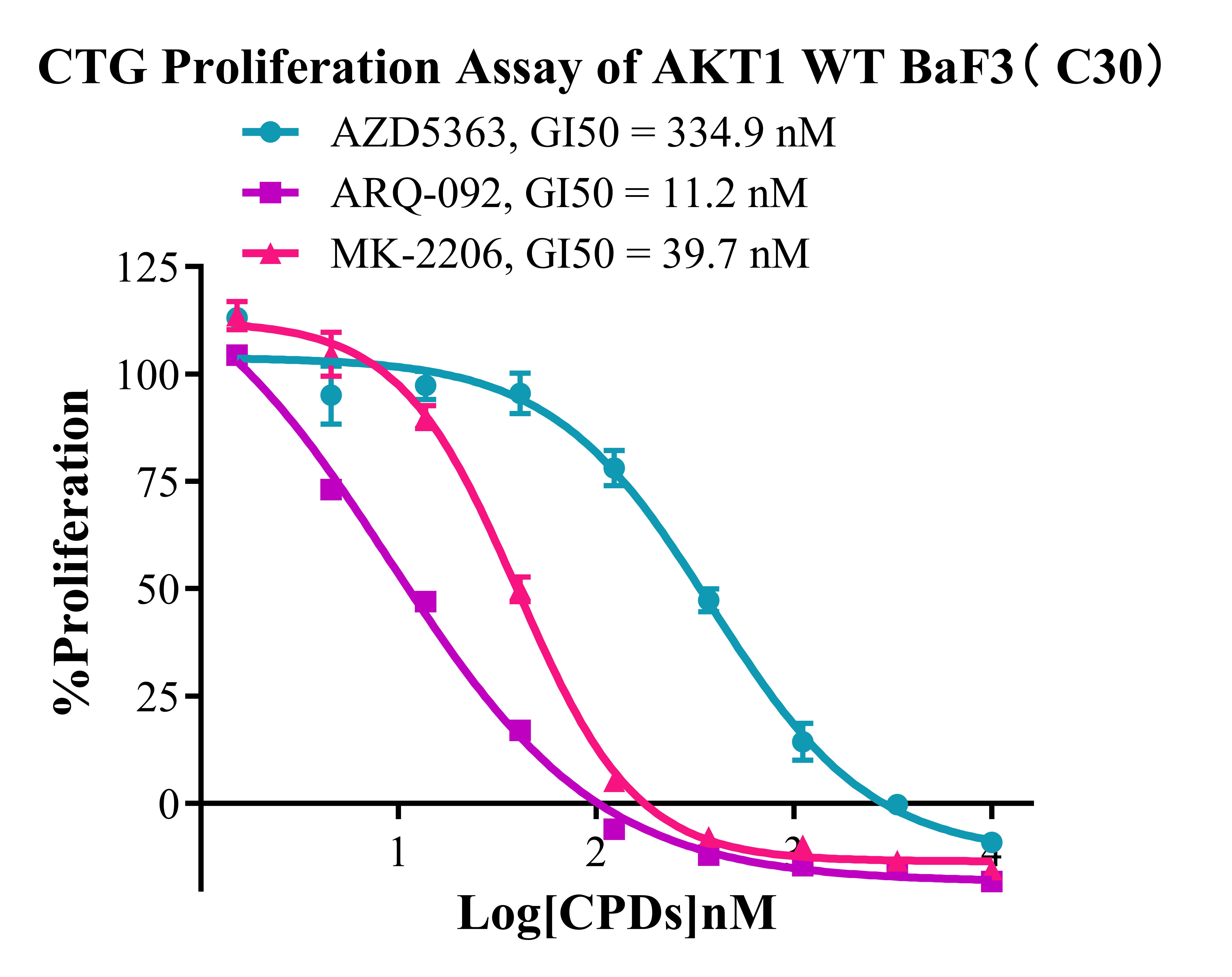 Figure 3. CTG Proliferation Assay of BaF3 AKT1 WT BaF3(C30).