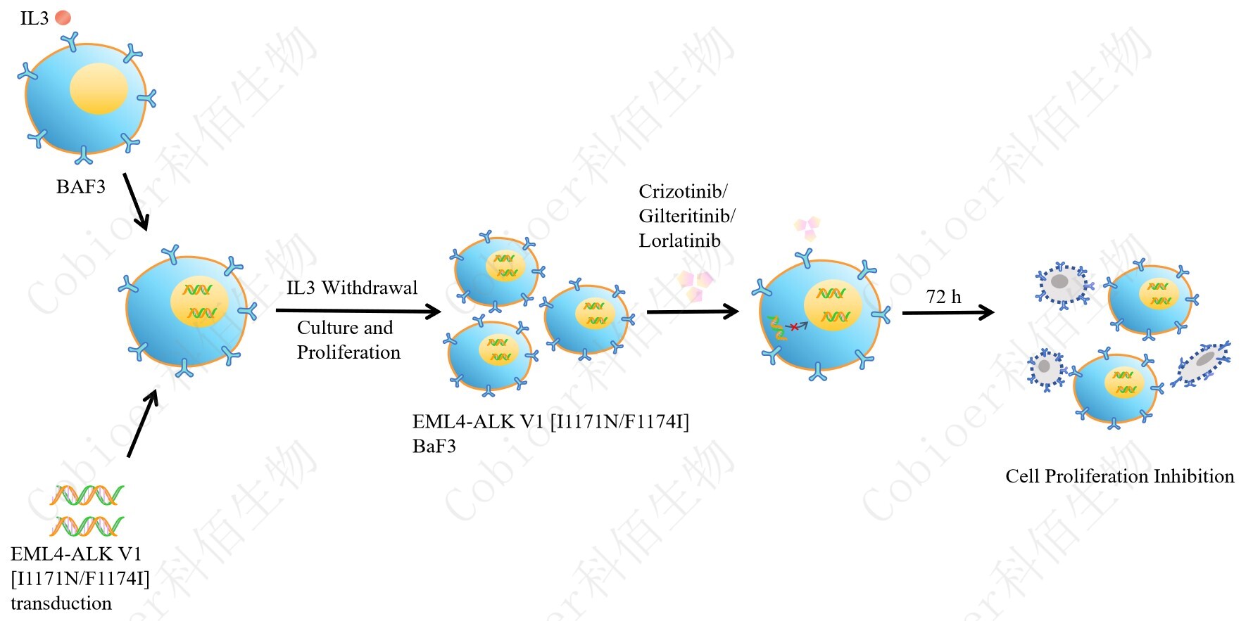 Figure 1. EML4-ALK V1 [I1171N/F1174I]/BaF3 細胞的構(gòu)建原理圖