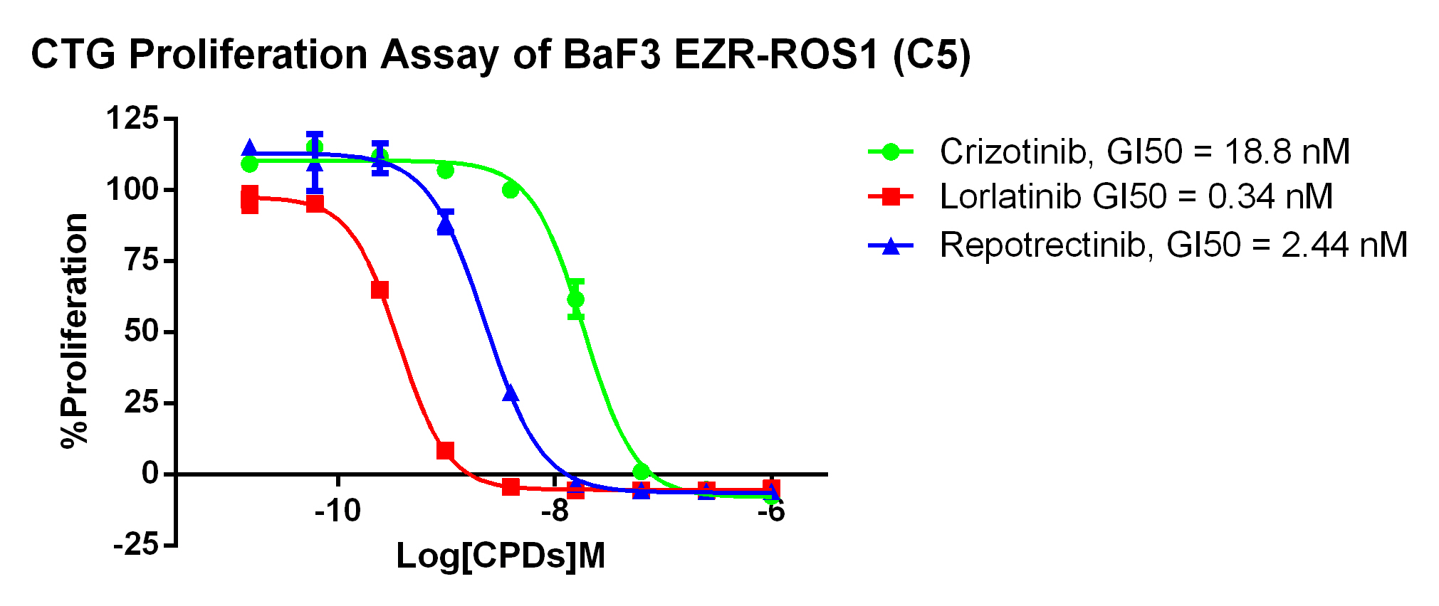 Figure 2. CTG Proliferation Assay of BaF3 EZR-ROS1 (C5).