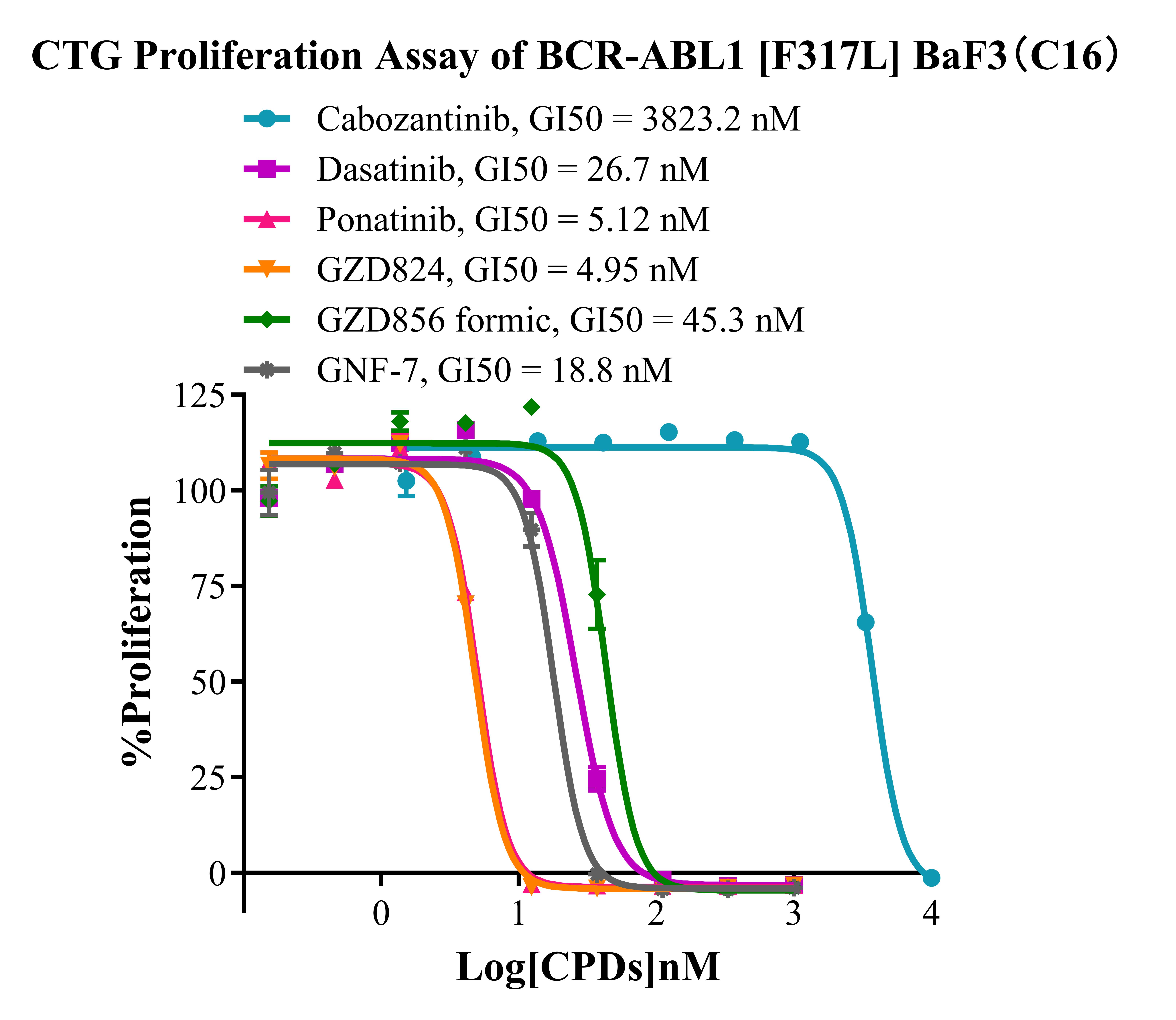首頁 /藥靶模型 /激酶靶點 /BCR-ABL1 /BCR-ABL1 [F317L]/BaF3
