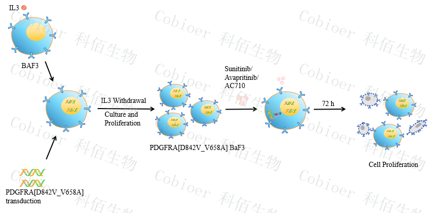 PDGFRA[D842V_V658A] BaF3 藥靶細(xì)胞, 通過轉(zhuǎn)導(dǎo)突變狀態(tài)的PDGFRA[D842V_V658A]基因到 BaF3細(xì)胞系中,穩(wěn)定表達(dá)人突變形態(tài)下的PDGFRA[D842V_V658A] 基因。