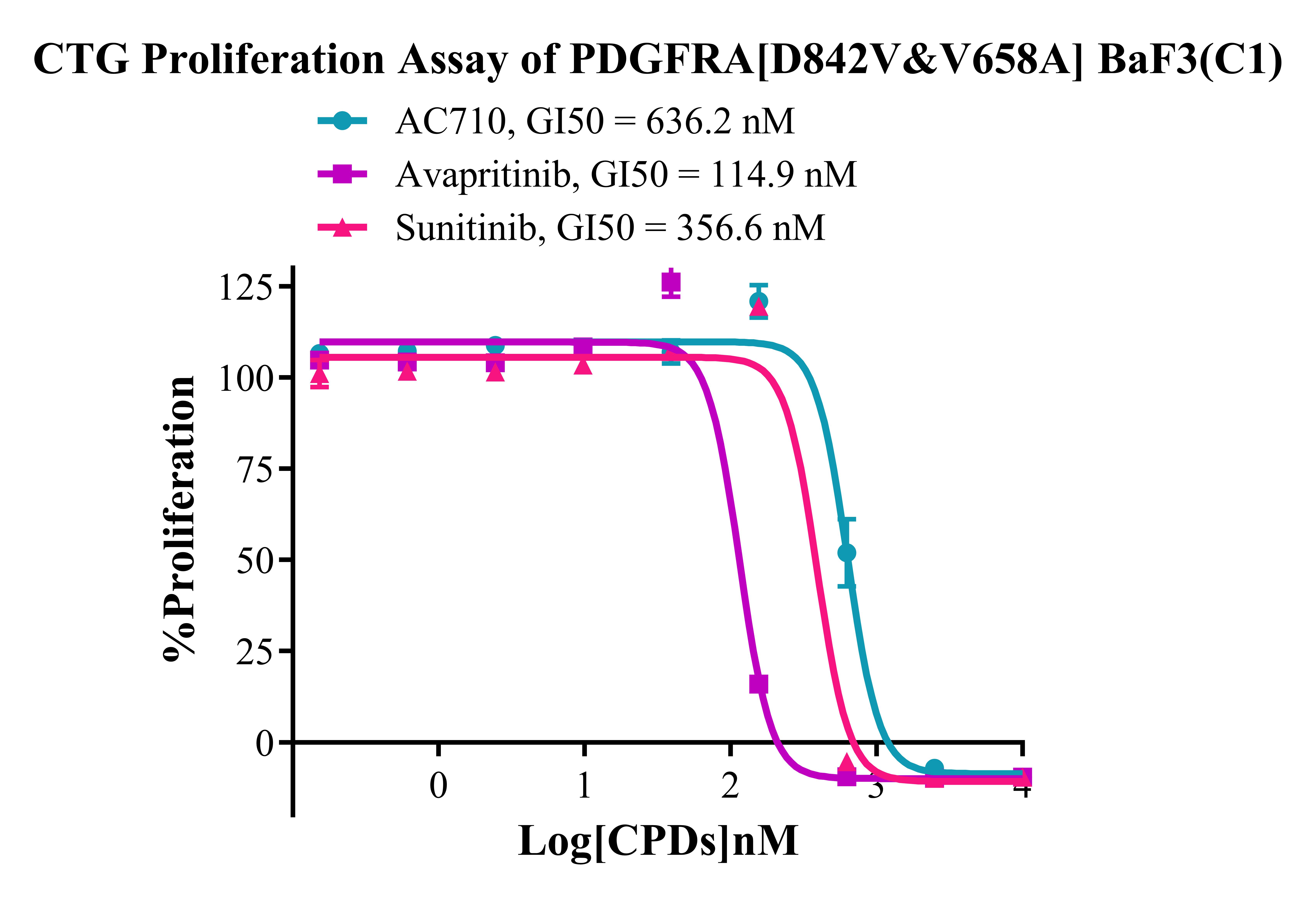 Figure 5. CTG Proliferation Assay of PDGFRA [D842V&V658A] BaF3(C1). |