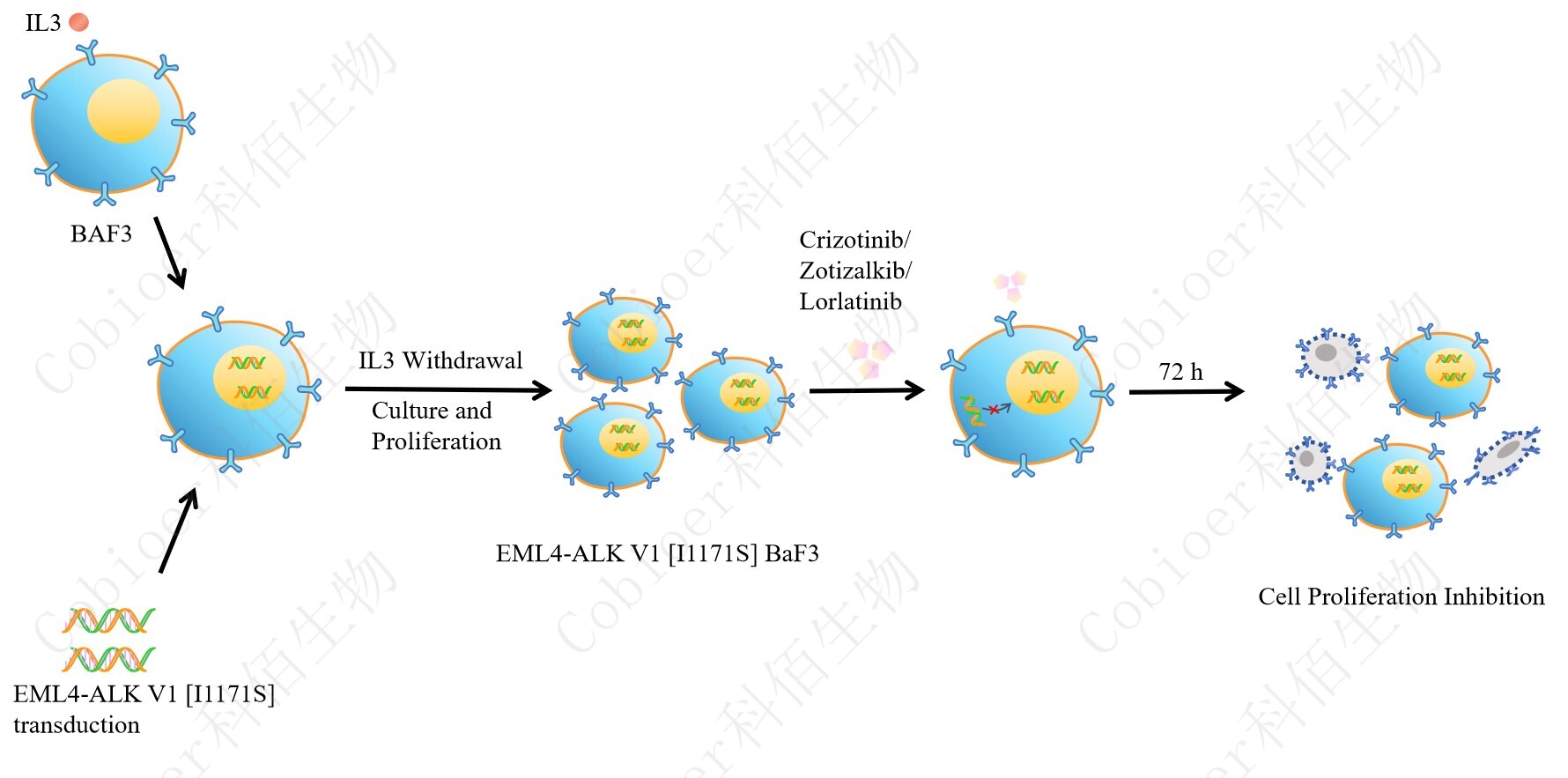Figure 1. EML4-ALK V1 [I1171S]/BaF3 細胞的構(gòu)建原理圖