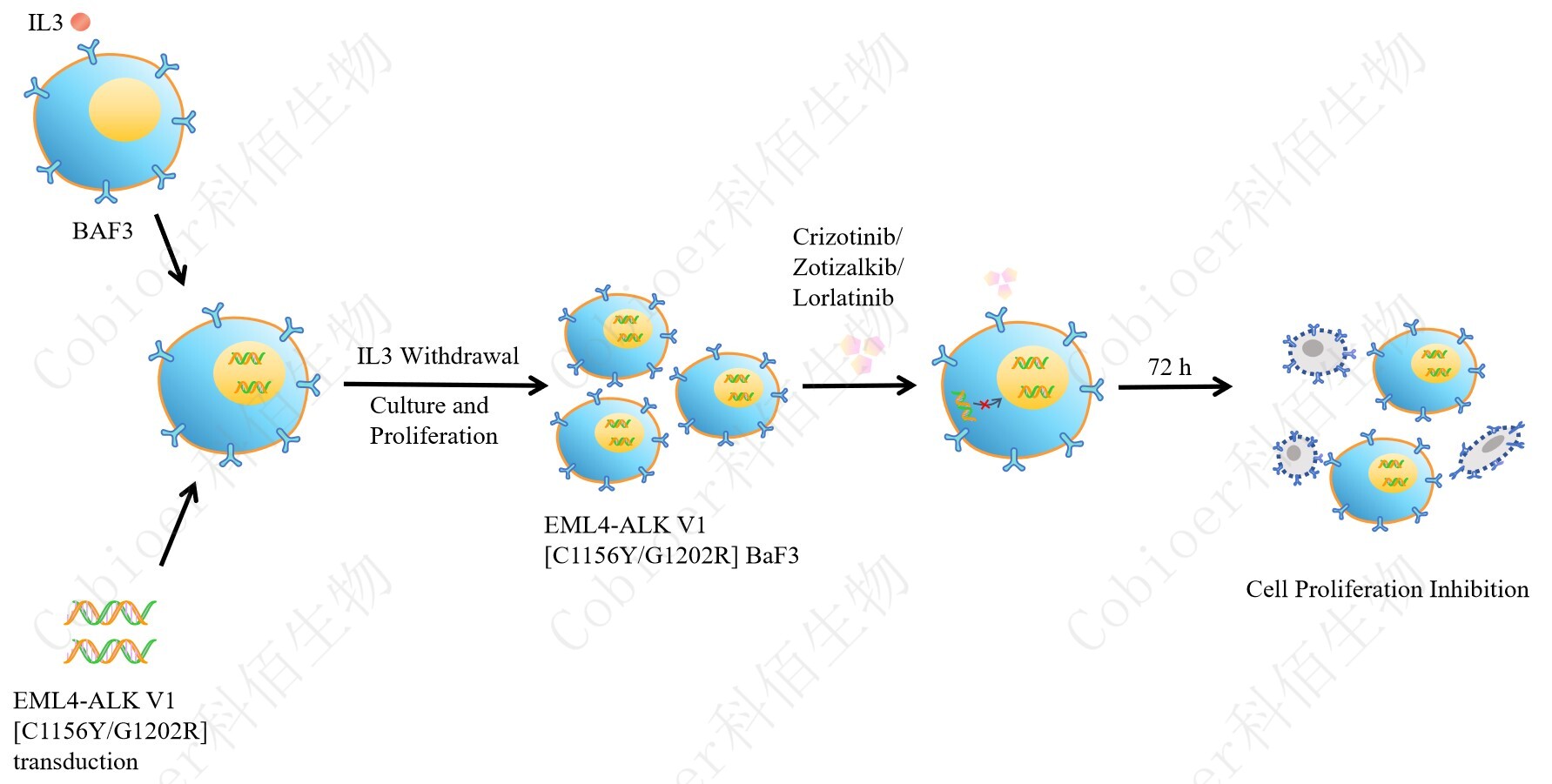 Figure 1. EML4-ALK V1 [C1156Y/G1202R] BaF3 細(xì)胞的構(gòu)建原理圖