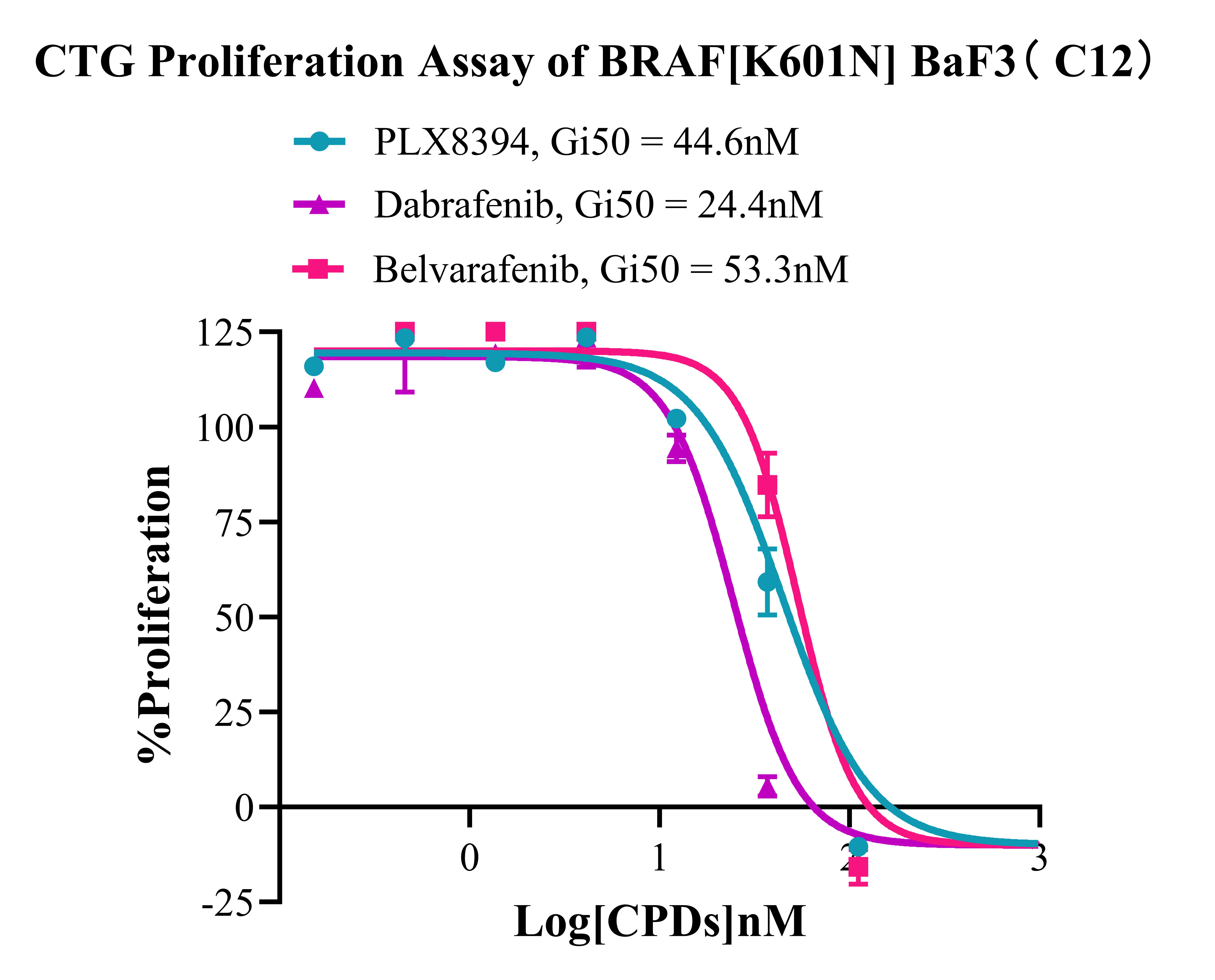 Figure 4. CTG Proliferation Assay of BRAF [K6D1N] BaF3 (C12).