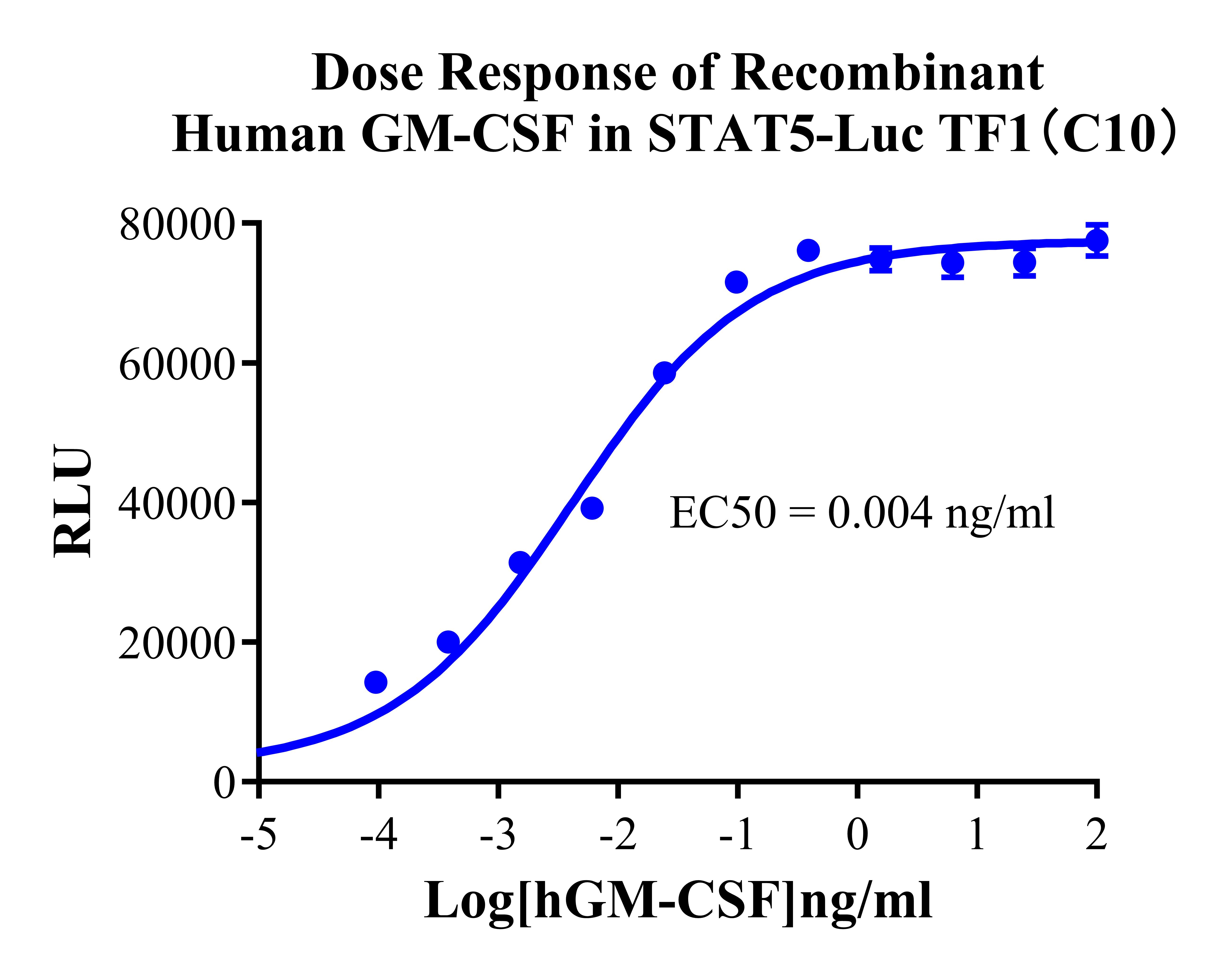 Figure 2. Dose Response of Recombinant Human GM-CSF in STAT5-Luc TF-1 (C10). |