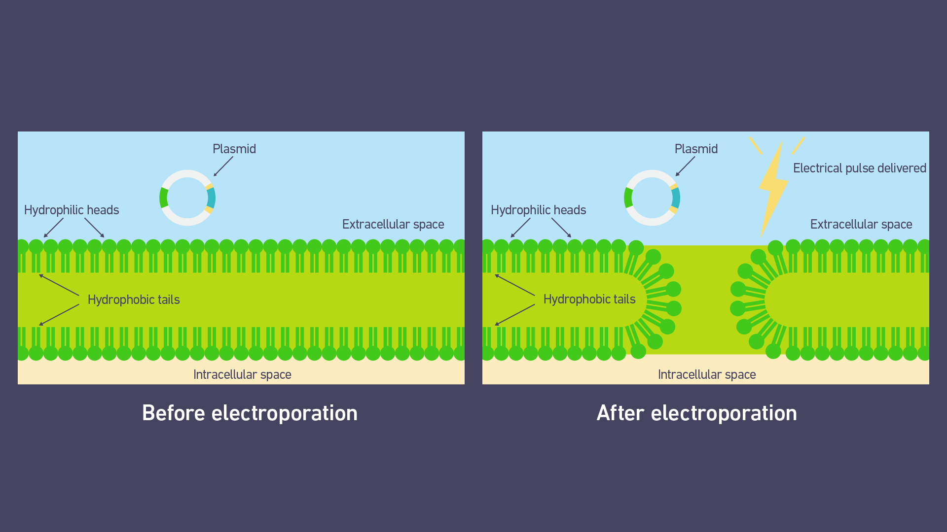 電穿孔,也稱為電通透化,是一種高效的非病毒遞送系統(tǒng),可使遺傳物質(zhì)(DNA和RNA)、蛋白質(zhì)、藥物或其他分子進(jìn)入細(xì)胞。它利用精確的脈沖電流在細(xì)胞膜上制造臨時孔隙,使分子能夠通過。