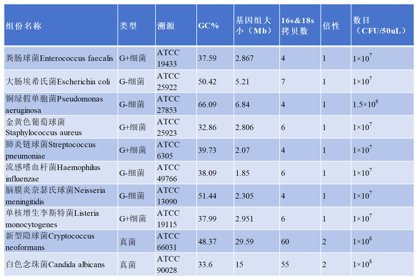 科佰生物新推出了多重病原菌質(zhì)控品,選擇具有代表性的病原組成見下表。以上病原均可溯源,各病原基因組數(shù)據(jù)科佰可提供。