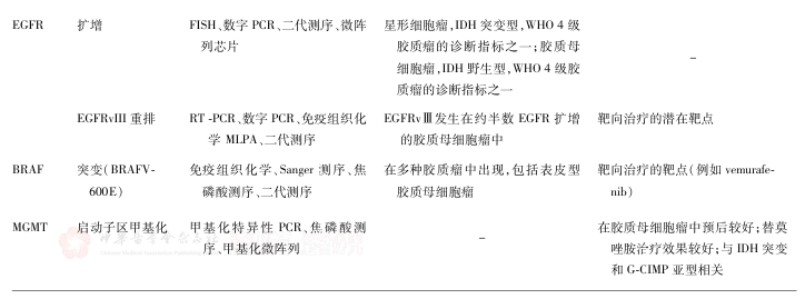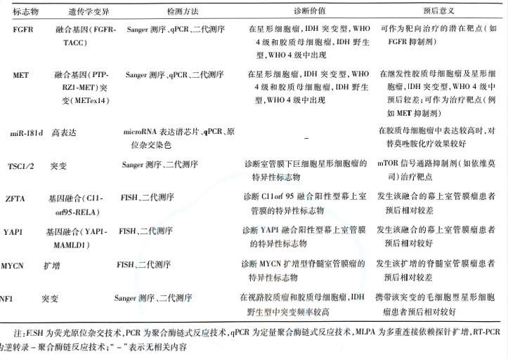腦膠質(zhì)瘤確診需通過腫瘤切除術(shù)或活組織檢查術(shù)獲取標(biāo)本,進(jìn)行組織病理學(xué)和分子病理學(xué)整合診斷,以確定病理分級和分子亞型。分子標(biāo)志物對腦膠質(zhì)瘤的個體化治療及臨床預(yù)后判斷具有重要意義。