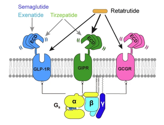 肥胖、2型糖尿病、非酒精性脂肪肝——這些代謝性疾病已成為全球公共健康的“三座大山”。傳統(tǒng)單靶點藥物(如胰島素、GLP-1單激動劑)雖有效,但難以解決復(fù)雜的代謝網(wǎng)絡(luò)失調(diào)問題。近年來,GLP-1R、GCGR、GIPR的雙靶點激動劑異軍突起,以“協(xié)同增效、減副增效”的優(yōu)勢成為研發(fā)熱點。從諾和諾德的Semaglutide到禮來的Tirzepatide,這些藥物不僅刷新了減重降糖的療效紀錄,更標志著代謝治療正式邁入“多靶點時代”。最近,Retatrutide通過GLP-1R、GIPR和GCGR 的三重激動作用,在肥胖治療中也顯示了優(yōu)秀的療效。