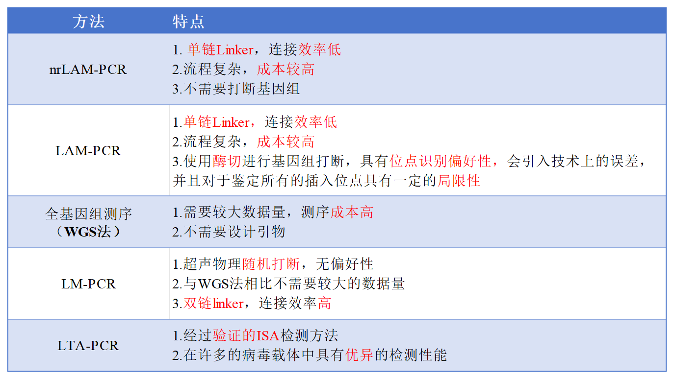 Table 1. 主流的慢病毒整合位點(diǎn)檢測方法比較