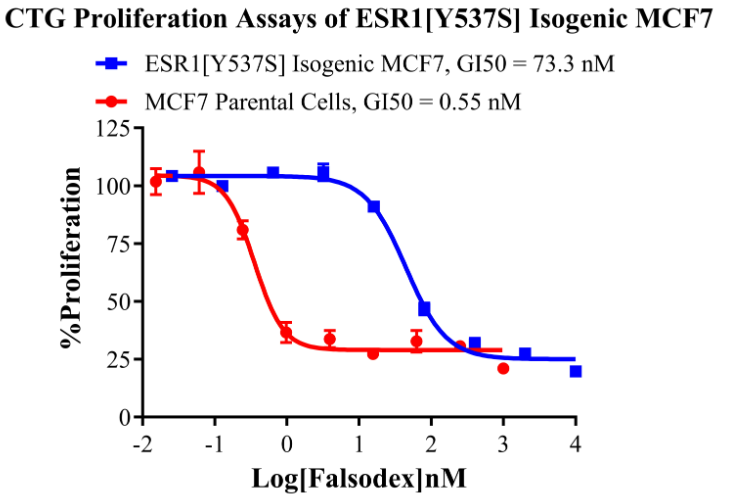 Figure 8. CTG Proliferation Assay of ESR1[Y537N(Homozygous,AF%:100) Isogenie MCF7(1C8).