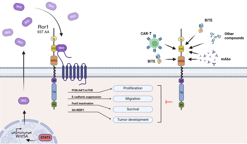 圖1:ROR1信號傳導(dǎo)和靶向療法