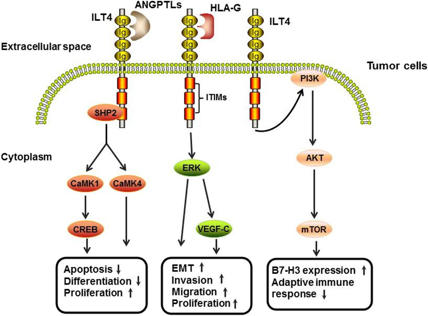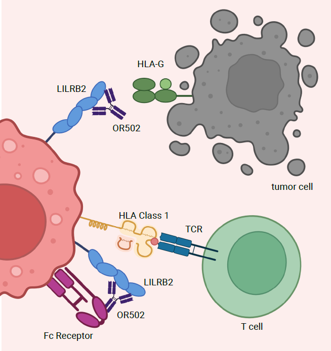 LILRB2主要表達(dá)于髓系細(xì)胞(如單核細(xì)胞、巨噬細(xì)胞、樹突狀細(xì)胞)和某些腫瘤細(xì)胞。它通過與配體(如HLA-G、ANGPTLs、SEMA4A和CD1d)結(jié)合,傳遞抑制性信號,抑制免疫細(xì)胞的活性,促進(jìn)腫瘤免疫逃逸。