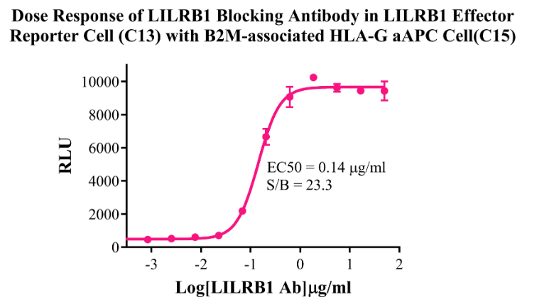 Figure 7.Dose Response of LILRB1 Blocking Antibody in LILRB1 Effector Reporter Cell (C13)With B2M-associated HLA-G aAPC Cell (C15).