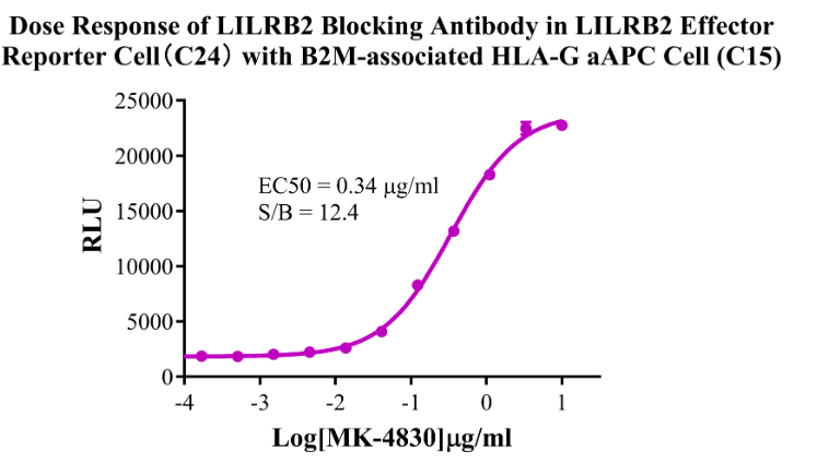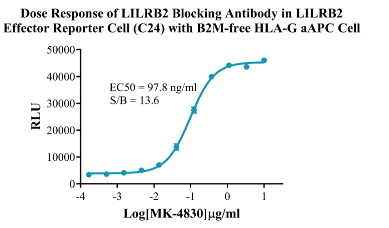 Figure 8.Dose Response of LILRB2 Blocking Antibody in LILRB2 Effector Reporter Cell (C24) With B2M-associated HLA-G aAPC Cell(C15).