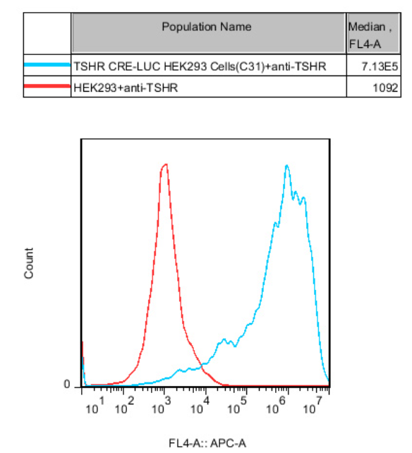 Figure 3. Recombinant TSHR CRE-Luc HEK293 stably expressing TSHR.