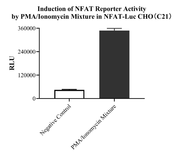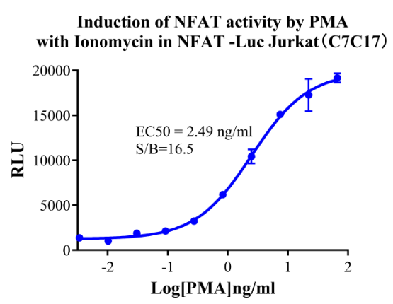 Figure 3.Detect Luciferase assay by Ultra Luciferase Detection Kit CBPH0001(we strongly suggest to purchase from Cobioer). Induction of NFAT activity by PMA with Ionomycin in NFAT-Luc Jurkat(C7C17).