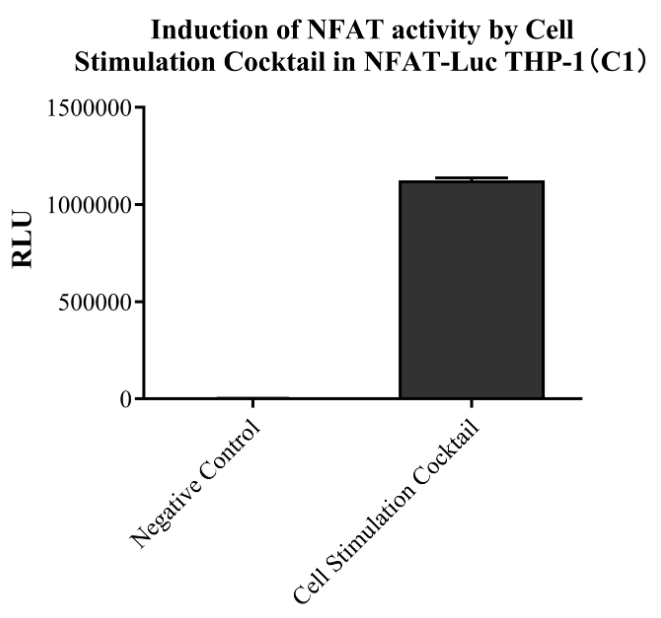 Figure 6. Induction of NFAT activity by Cell Stimulation Cocktail  in  NFAT-Luc THP-1(C1).