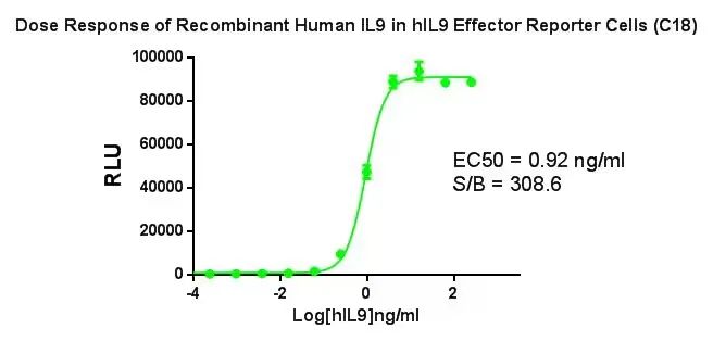 Figure 1. Dose Response of Recombinant Human lL9 in hlL9 Effector Reporter Cells (C18).