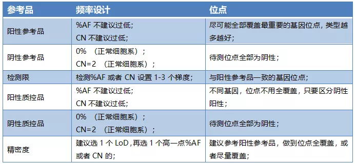 2.陽性參考品設(shè)置最為復(fù)雜,著重聚焦臨床意義的基因位點(diǎn),不要求全覆蓋,同時要考慮靈敏度(最低檢出限LoD)設(shè)置,考慮到濃度梯度或突變梯度的不同,應(yīng)對各水平陽性參考品設(shè)置相應(yīng)檢出要求;